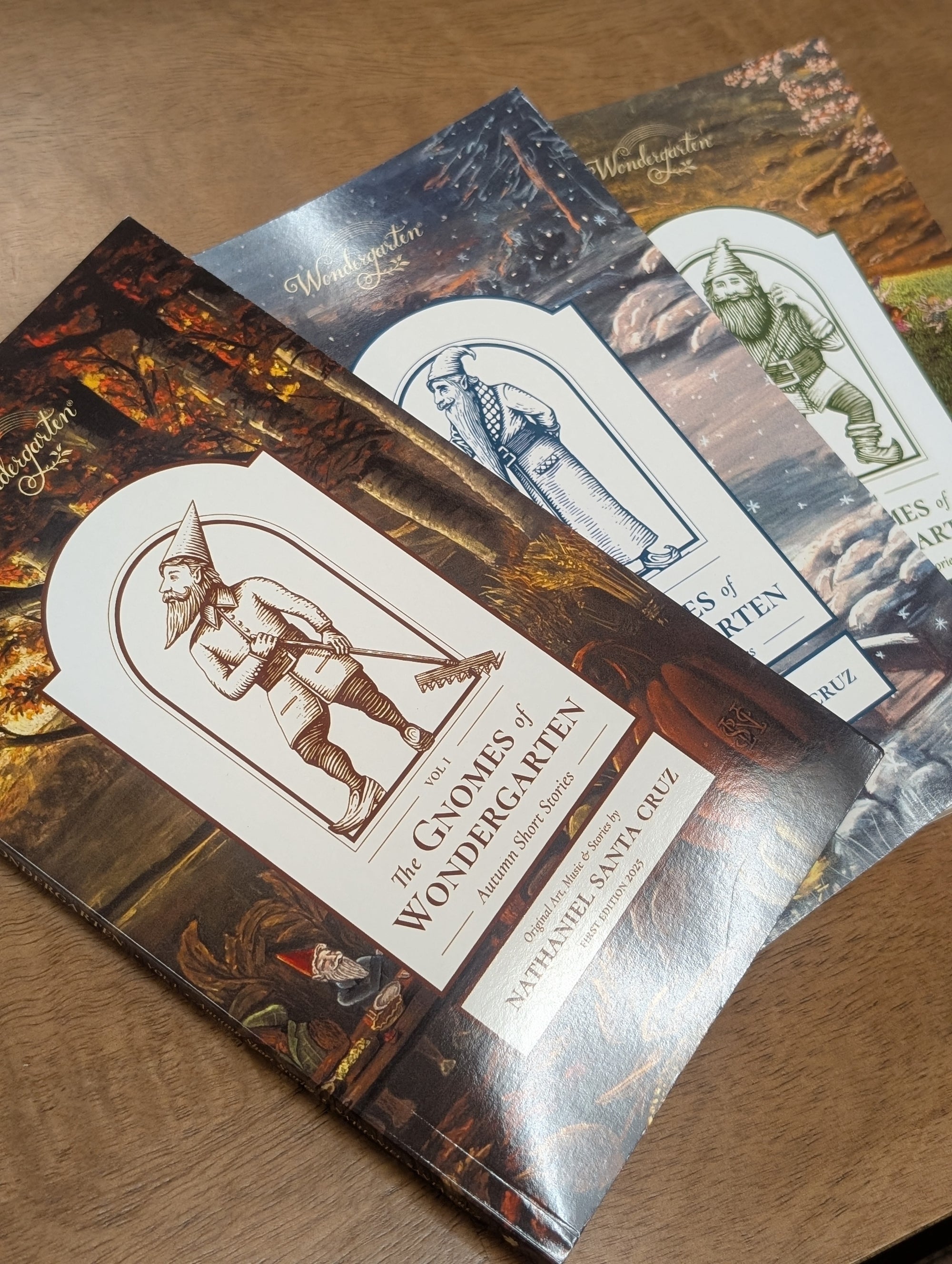 As the stories grew, so did the world of our gnomes. Being quite inspired by folklore traditions, I wanted to incorporate elements of the Winter King and Lady Spring, poems about Mother Earth, Father Sun, Brother Wind, and Sister Rain. But the problem was that they were all disconnected, with little continuity between them. It was all beautiful, but scattered.