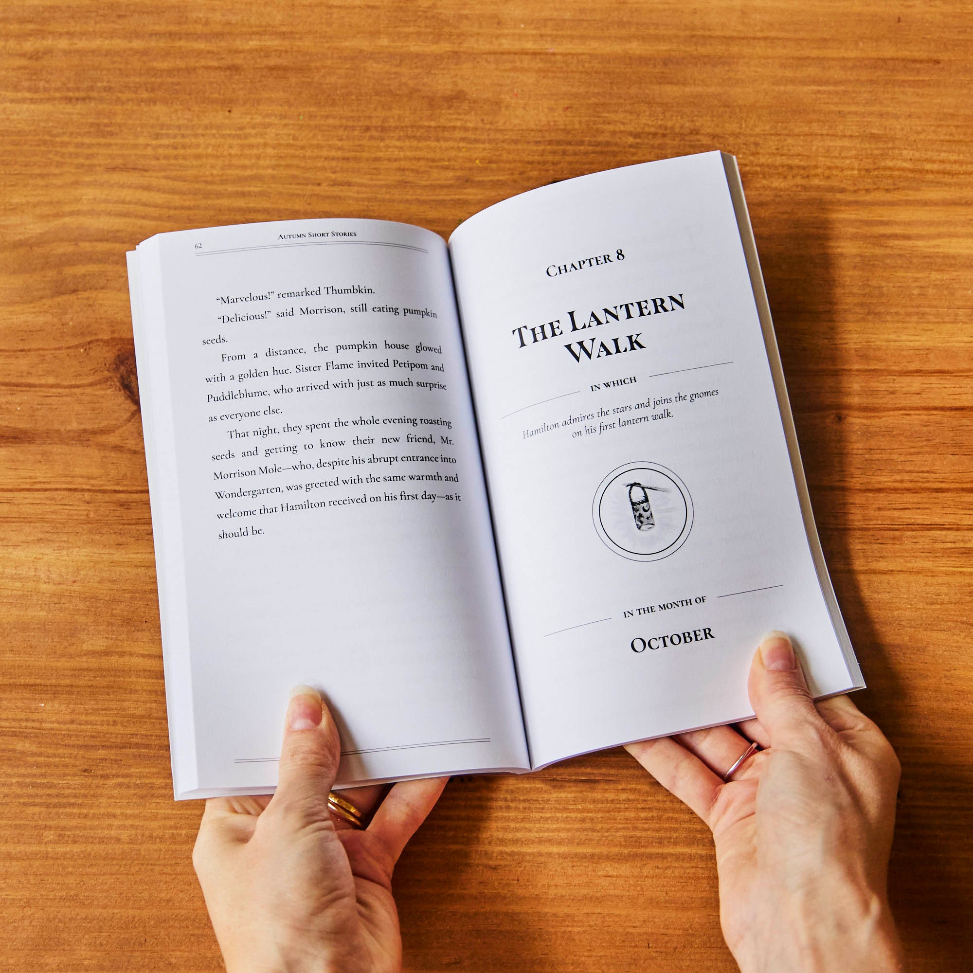 Then, of course, each of the gnomes needed friends, too—little well-dressed animals (inspired by Beatrix Potter) who each share the same temperament. So came Mr. Morrison Mole, friend to Rutabug; Sir Alistar Owl, friend to Puddleblume (whom you’ll meet in winter); Ms. Eliza Hummingbird, friend to Petipom (who comes in the spring); and of course, our protagonist, Mr. Hamilton Squirrel, best friend to Thumbkin (who, like Walt Disney’s Jiminy Cricket, serves as both narrator and character in our stories).